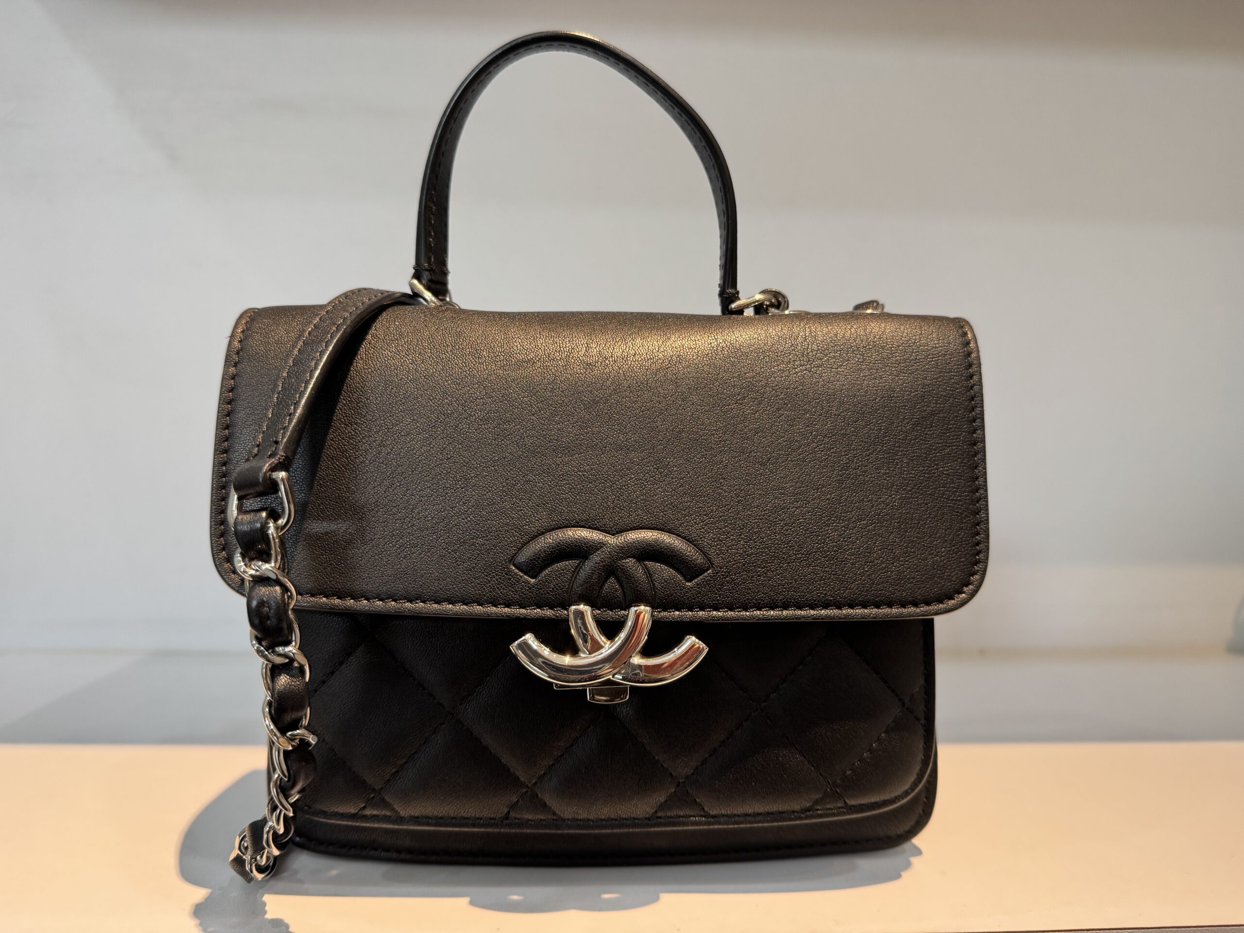 (Serial: 25, Year: 17/18) Black, Quilted Leather W(19cm) x H(16cm) x D(6cm) Very Good Condition (95% new)